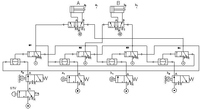 - vsak korak je sestavljen iz koračnega modula: iz IN ventila in 3/2 bistabilnega pnevmatskega