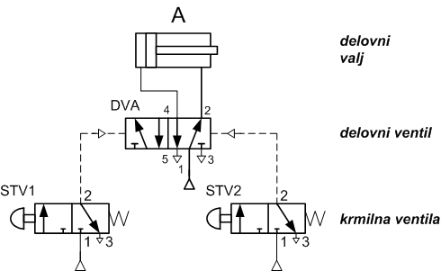 - krmile ventile ( dajalniki signalov - krmilijo delovne ventile )