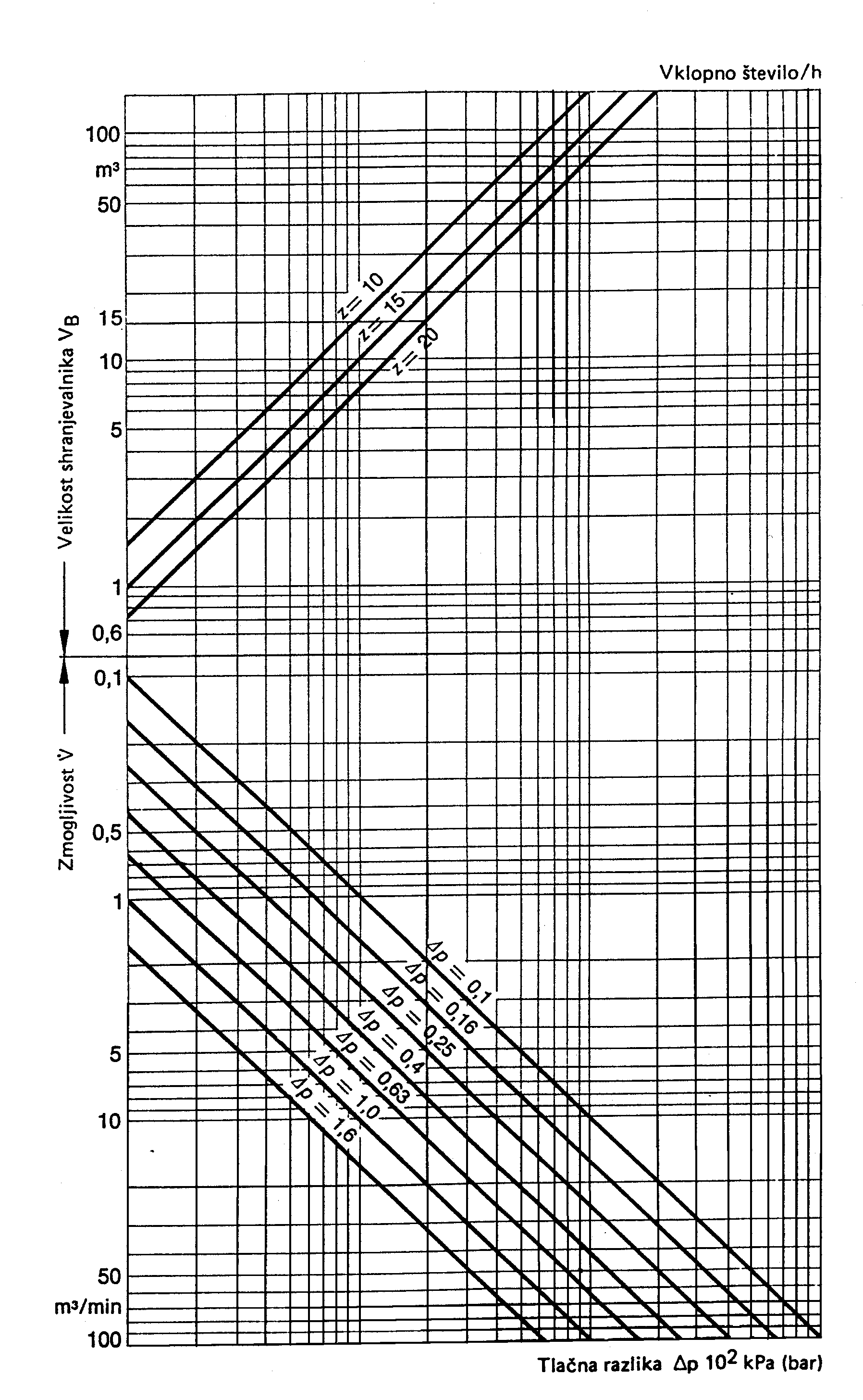 - dopustni padec tlaka ∆p = 0,2 bar.