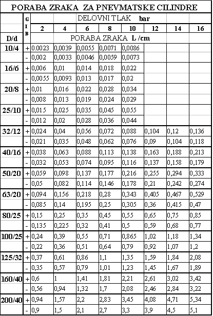 - zmogljivost pnevmatskega omrežja je 4 m3/h