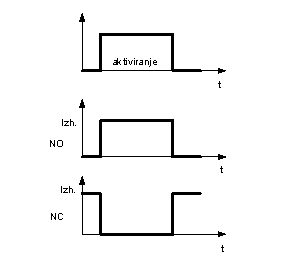 Po delovanju so lahko NO (Normal Open - kot delovni kontakt) ali pa NC (Normal Close - mirovni kontakt)