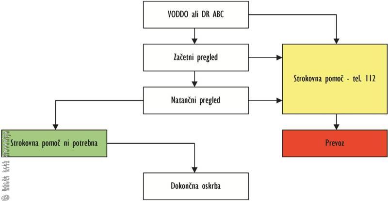 1. Ali je stanje prizadetega dovolj resno, da je potrebno obvestiti službo nujne medicinske pomoči oz. ga napotiti k zdravniku?