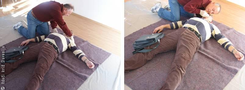 Sodelavec je najprej preveril odzivnost tako, da ga je narahlo stresel in poklical po imenu. Poškodovanec je zastokal in odrinil njegovo roko, nato pa se je umiril in ponovno zasmrčal.