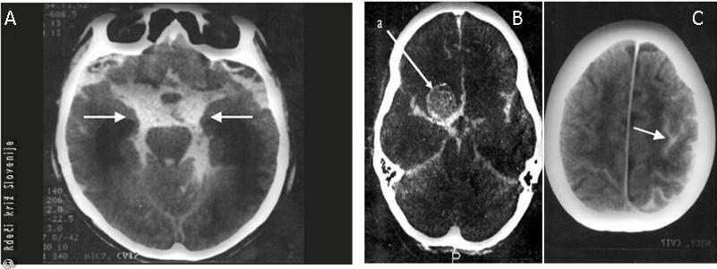 S – space-occupying lesions (angleško): Okvare, ki povzročajo pritisk na možgane zaradi novonastale spremembe v lobanji (npr. tumor). Povzročijo lahko postopno zoženje zavesti zaradi rasti novotvorbe in pritiska na možganske strukture (Slika 5).
