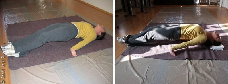· bolnik ima pokrčeni roki in iztegnjeni nogi;