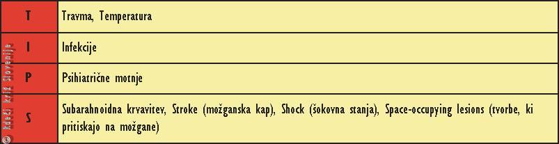 Pri razmišljanju o vzrokih motnje zavesti nam je lahko v pomoč angleška beseda TIPS (pomeni tipi, vrste) in samoglasniki AEIOU. S pomočjo obeh pomagal si lažje zapomnimo razdelitev vzrokov motnje zavesti.
