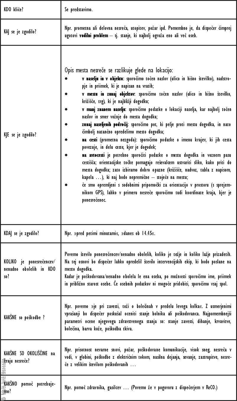 Vprašanja pri klicu službe nujne medicinske pomoči.