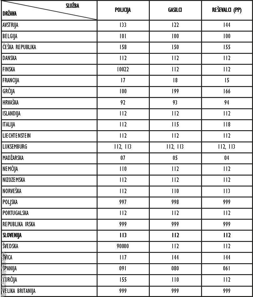 6. State of Implementation of the single European emergencz call number «1-1-2». European Commission, Directorate-General Environment. Brussels; 2001 18 October. Dosegljivo na: URL: http://europa.eu.int/comm/environment/civil/pdfdocs/112surv-2001.pdf
