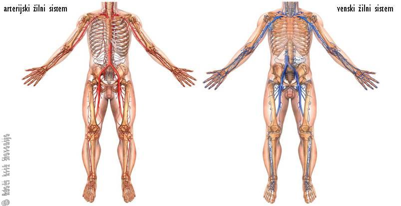 Arterijski (A) in venski (B)žilni sistem.