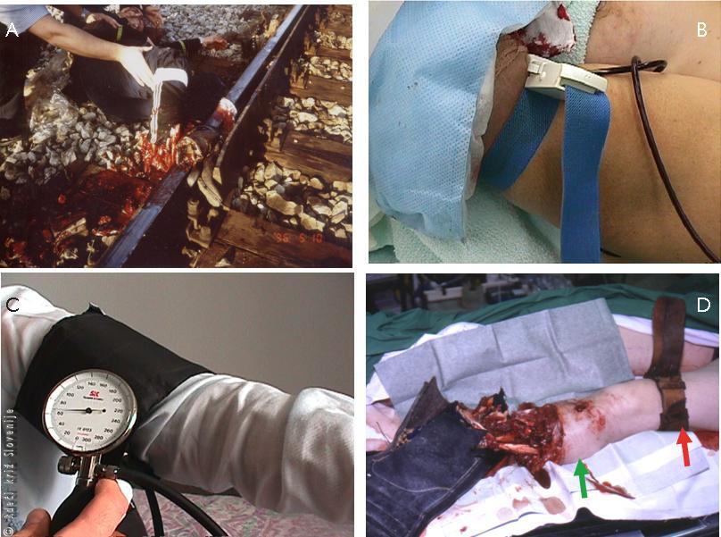 Pravilen izbor širokega traku, vendar nepravilno mesto namestitve Esmarchove preveze (D).