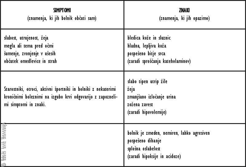 Simptomi in znaki izgube krvi pri 70 kg težkem poškodovancu.