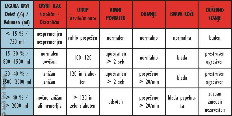 Vrednosti veljajo za 70 kg težkega poškodovanca.