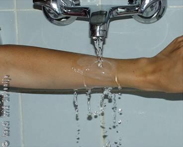 · mesto pika očistimo z vodo in hladimo z obkladki,