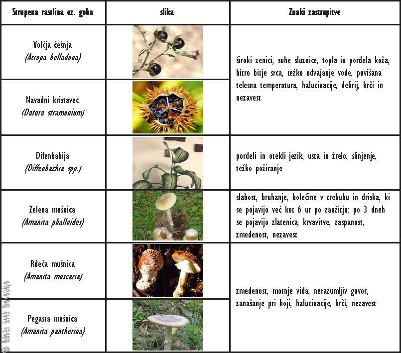Zaradi lažjega prepoznavanja vrste rastline oziroma gobe in nadaljnjega zdravljenja MORAMO rastlino oziroma gobo ali njune ostanke poslati z zastrupljencem v bolnišnico.