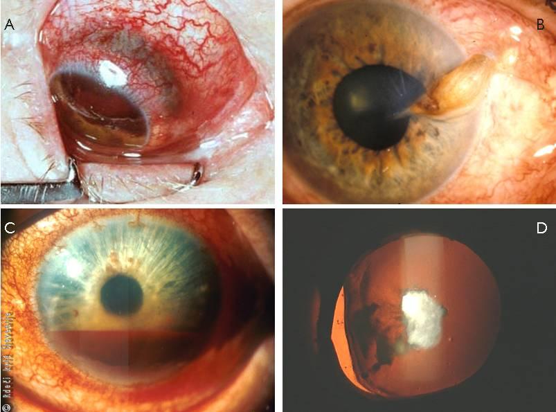 6. Motnja v leči, ki nastane zaradi vstopa tujka v oko ali zaradi odprte poškodbe zrkla z ostrim predmetom (Slika 7D).