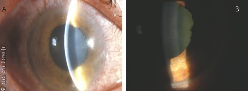 A – Izgled očesa pri akutnem glavkomskem napadu.