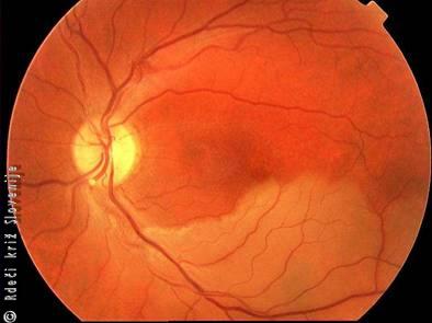 Zapora spodnje veje arterije centralis retine (neprekrvljena področja so svetlejša).