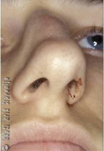 Pri novorojenčkih opažamo poškodbe mišice obračalke glave, ki nastopijo med porodom. Novorojenček ima glavico večinoma ves čas nagnjeno na obolelo stran, na vratu je v področju mišice obračalke glave tipna testasta, včasih čvrsta zatrdlina. Koža nad njo ni spremenjena, pogosto ni zelo boleča. Le redko gre za urgentno stanje.