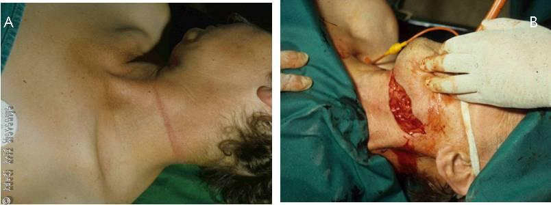 Sledijo ureznine v področje vratu, najpogosteje zaradi samomorilskih namenov (Slika 18B). Predvsem najdemo vreze v preepiglotisnem področju ali v področju ščitastega hrustanca.