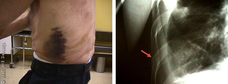 Pri udarninah v področje prsnega koša moramo pomisliti tudi na poškodbo skeleta, zlasti na zlom reber.