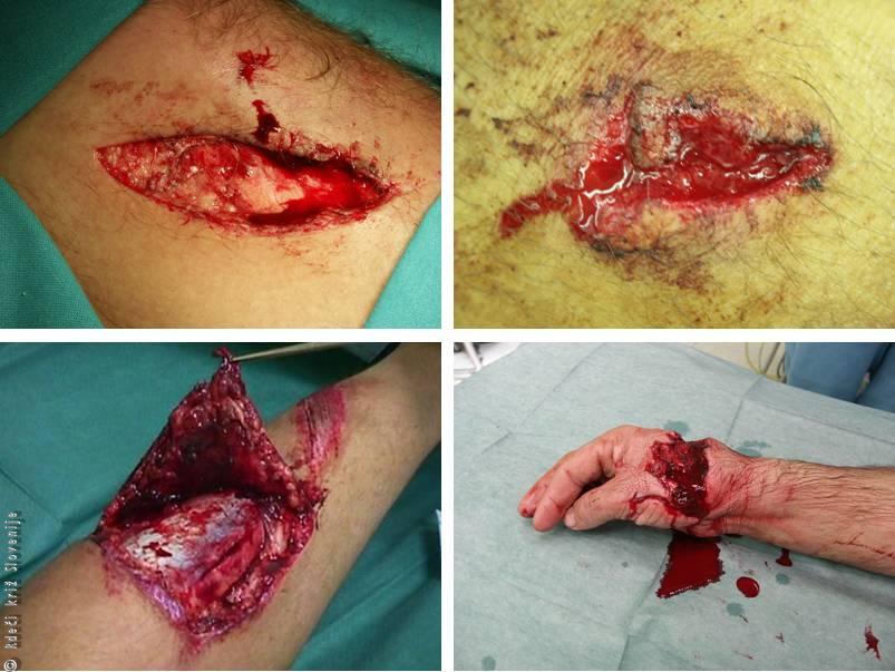 Pri poškodovancu se pogosto srečamo z različnimi vrstami ran. Pogosto je ista poškodba hkrati raztrganina, udarnina in zmečkanina.