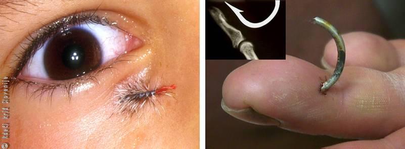 Pri vbodnih ranah moramo pomisliti tudi na tujke, ki ostanejo v globlje ležečih tkivih in povzročajo bolečine. Pletilna igla na dlančni strani zapestja je povzročala hude bolečine pri premikanju roke, zaradi neznatne vstopne rane pa je bil izvor bolečine dlje časa neodkrit.