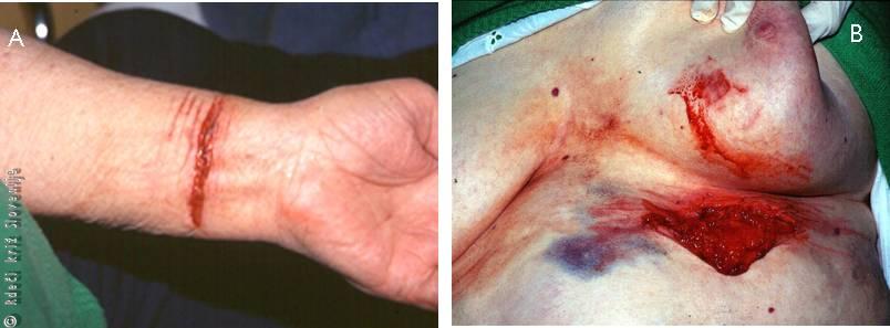 Za majhno vstopno rano v področju trebuha in prsnega koša se lahko skrivajo smrtno nevarne poškodbe organov v trebušni in prsni votlini (penetrantne in perforantne rane), ki so odvisne tudi od oblike in dolžine rezila.