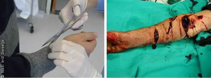 · zaustavitev krvavitve in ustrezna oskrba rane (krna);