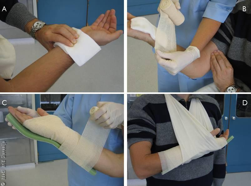 A – Zaustavitev krvavitve, obveza rane in imobilizacija.
