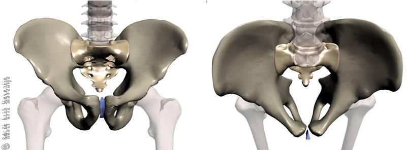 A – Prerez ženske medenice.
