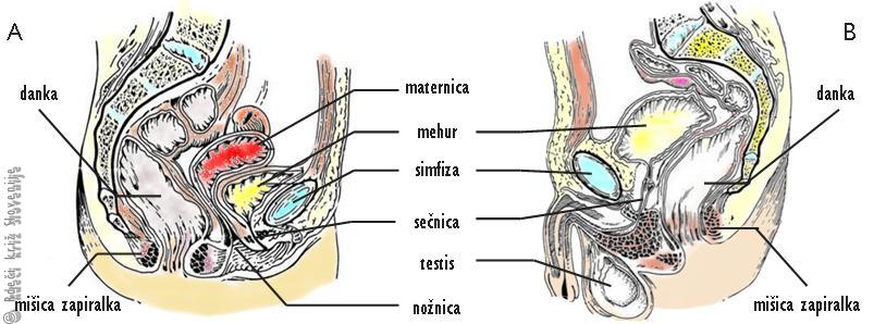 B – Prerez moške medenice.