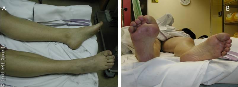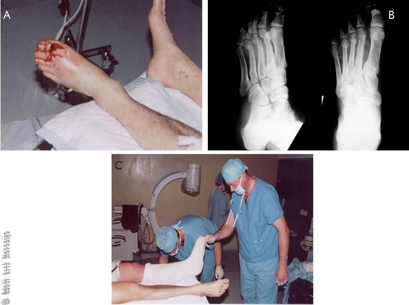 A – Izgled poškodovanega stopala.