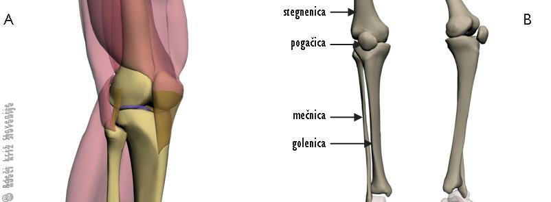 B – koleno in golen,