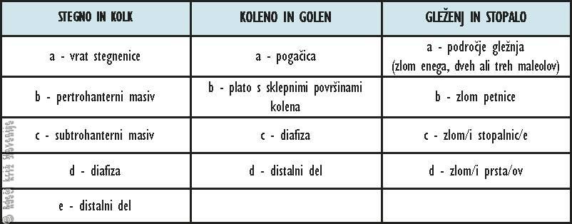 C – gleženj in stopalo.
