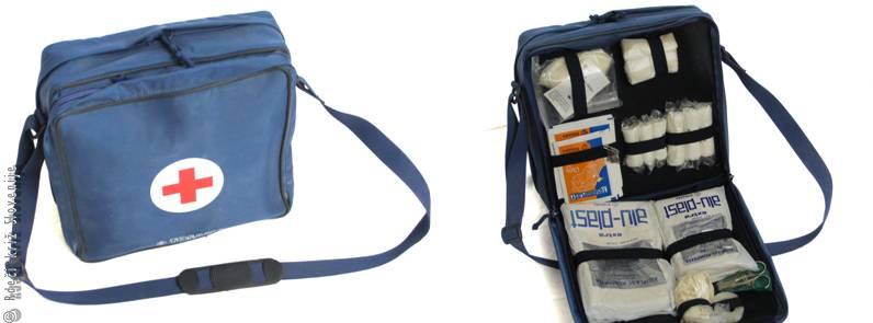 Torbica prve pomoči, ki jo uporabljajo ekipe Civilne zaščite in Rdečega križa.